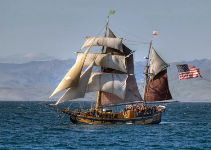 범선 시대에 사용된 두 개의 돛대를 가진 범선입니다.