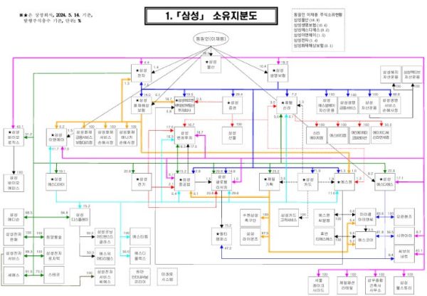 삼성그룹 지배구조는 삼성물산 19%=>삼성생명 8.64%=>삼성전자 순이고 삼전 지분을 물산 5.01% 화재 1.4% 총수일가 3~4%임 문제는 삼성생명ㆍ삼성화재 지분인데